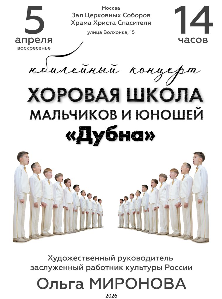 5 апреля 2026 года (воскресенье) в 14:00 в Зале Церковных Соборов Храма Христа Спасителя состоится Юбилейный концерт Хоровой школы мальчиков и юношей «Дубна»! Художественный руководитель — Заслуженный работник культуры России […]